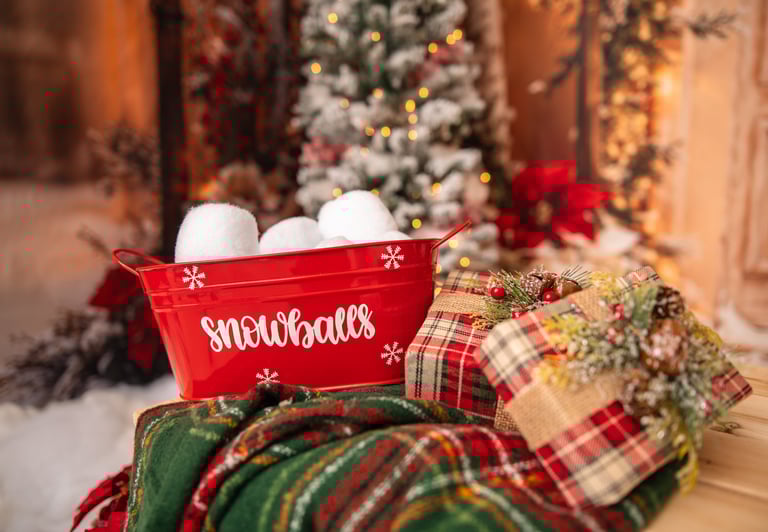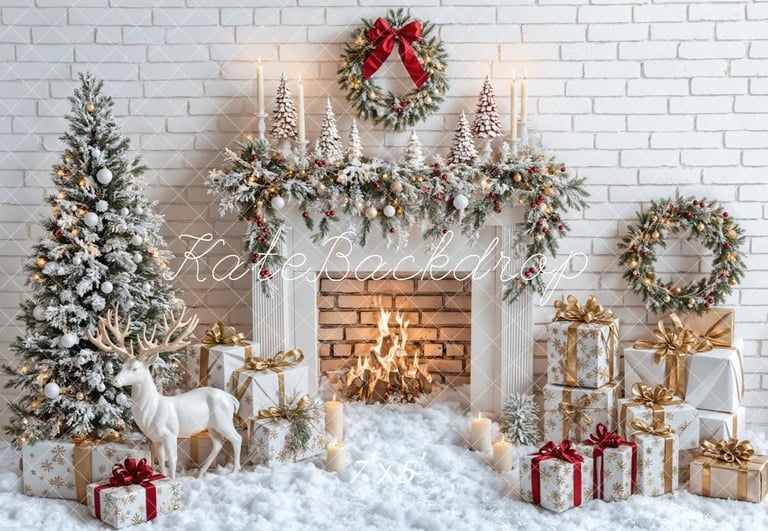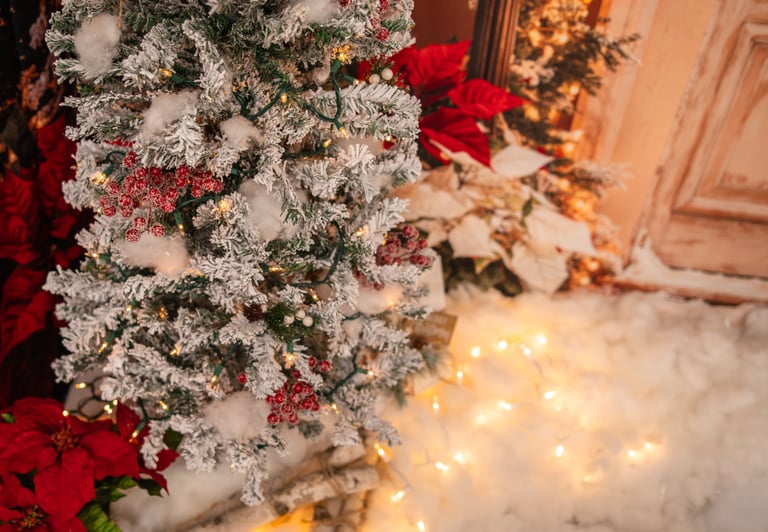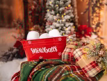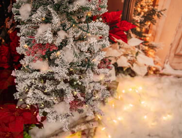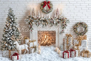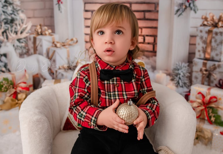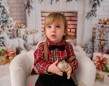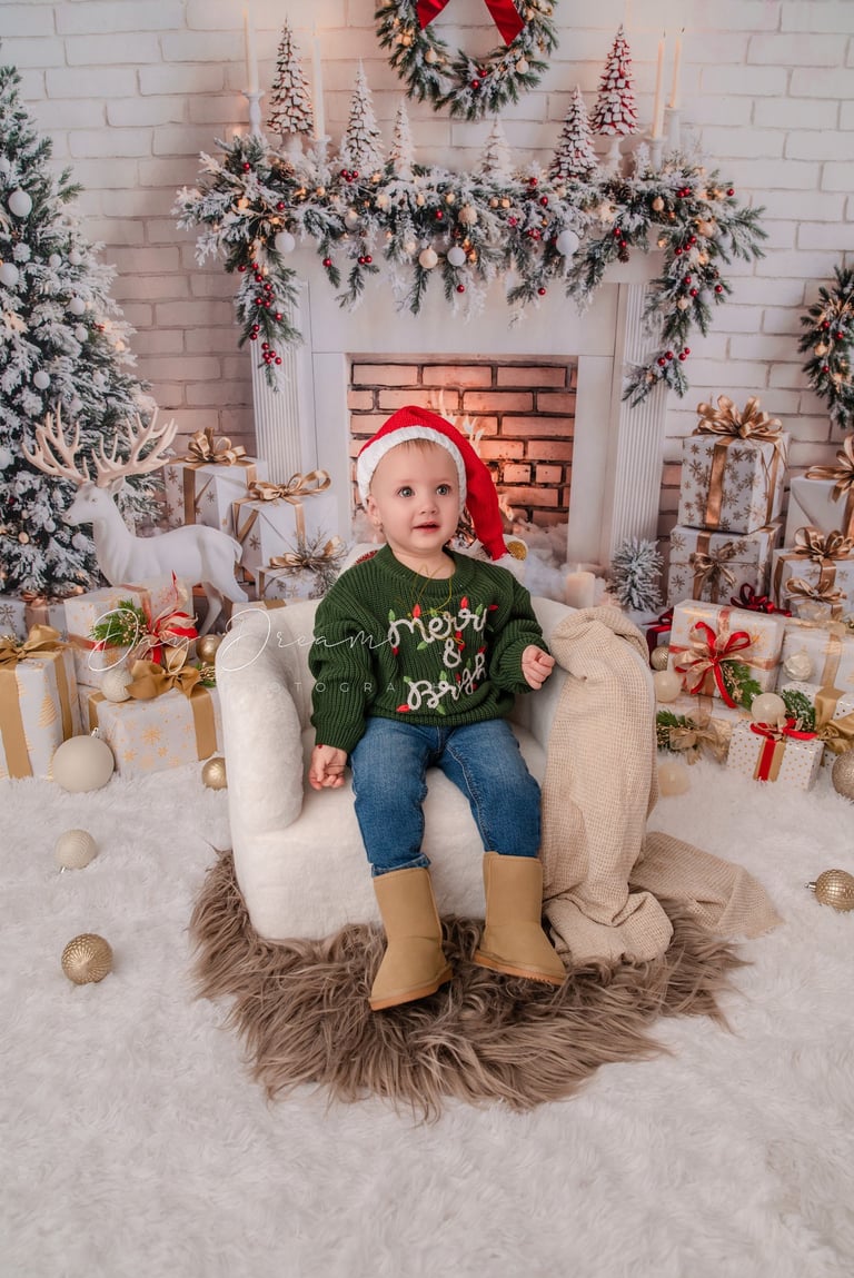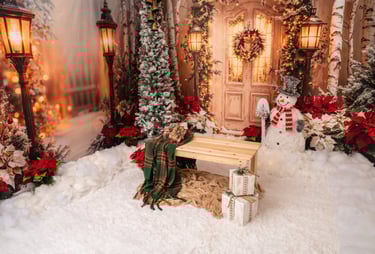 ❄️ Baby Setup: A smaller, whimsical holiday backdrop featuring a glowing fireplace, snowy tree, and golden detail. Designed especially for little ones (6 months - 3 years old) making their Christmas portraits extra magical and fun!