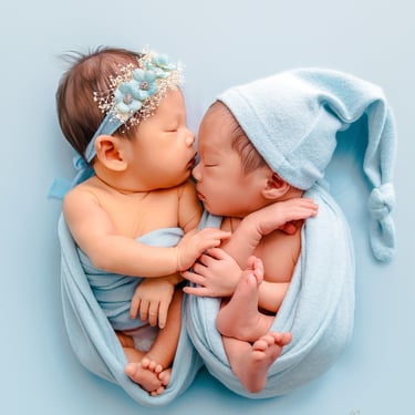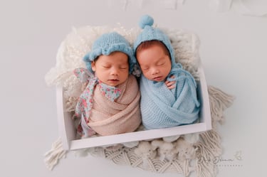 A sweet, minimalist crib perfect for swaddled newborns and twins. This setup highlights your baby’s peaceful expressions while creating soft, clean portraits with a timeless feel.